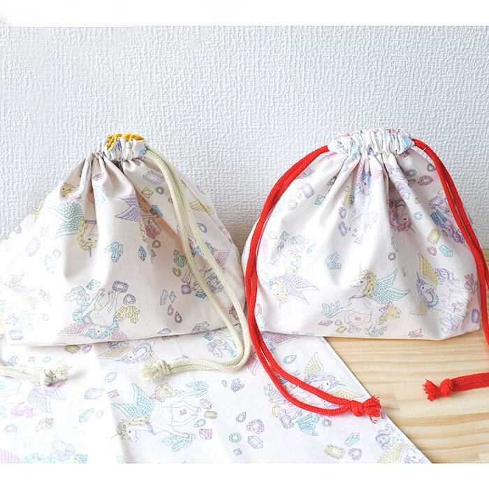 お弁当袋やランチ用袋として、また、教材入れなど、中サイズの巾着として便利にご利用いただけるサイズです。